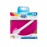 Miseczka z pokrywką wykonana z nietłukącego się plastiku sprawdzi się zarówno w domu, jak i na spacerze. Ucho, brzegi i spód naczynia pokryte są gumą, dzięki czemu miska nie ślizga się w rękach ani na stole. Asymetryczny kształt ułatwia nabieranie jedzenia łyżeczką. Miskę można używać w kuchence mikrofalowej i myć w zmywarce. Dostępna w zestawie z łyżeczką.
