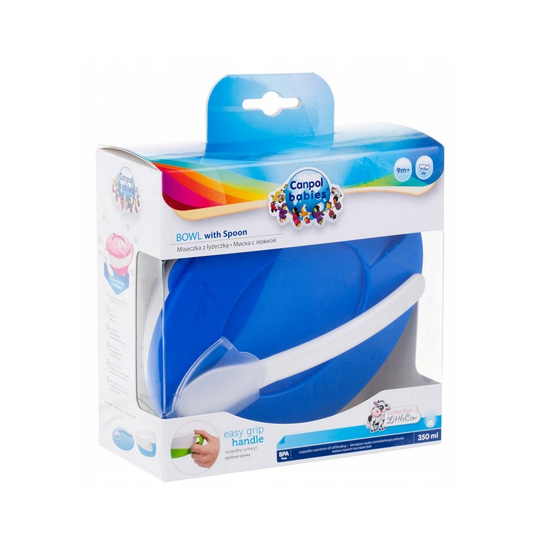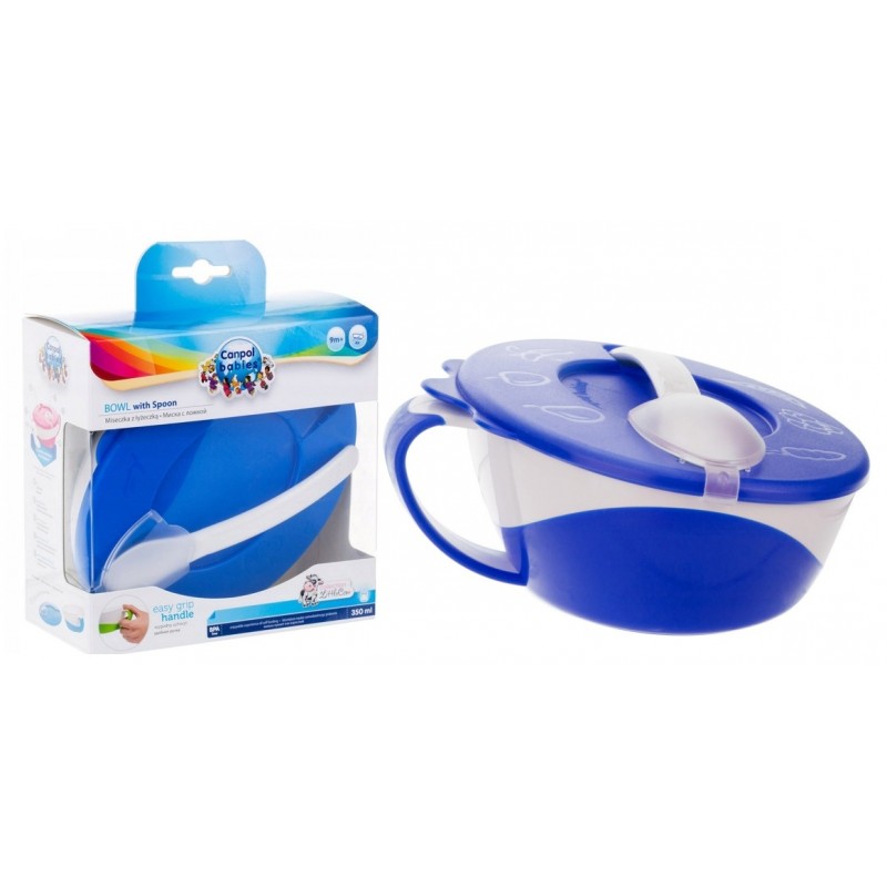 CANPOL Miseczka z Łyżeczką i Pokrywką 350ml Niebieska 31/406