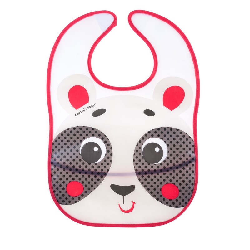 Miękkie i łatwo zmywalne tworzywo -zabezpiecza ubranie przed zabrudzeniem podczas posiłków i zabawy dziecka.