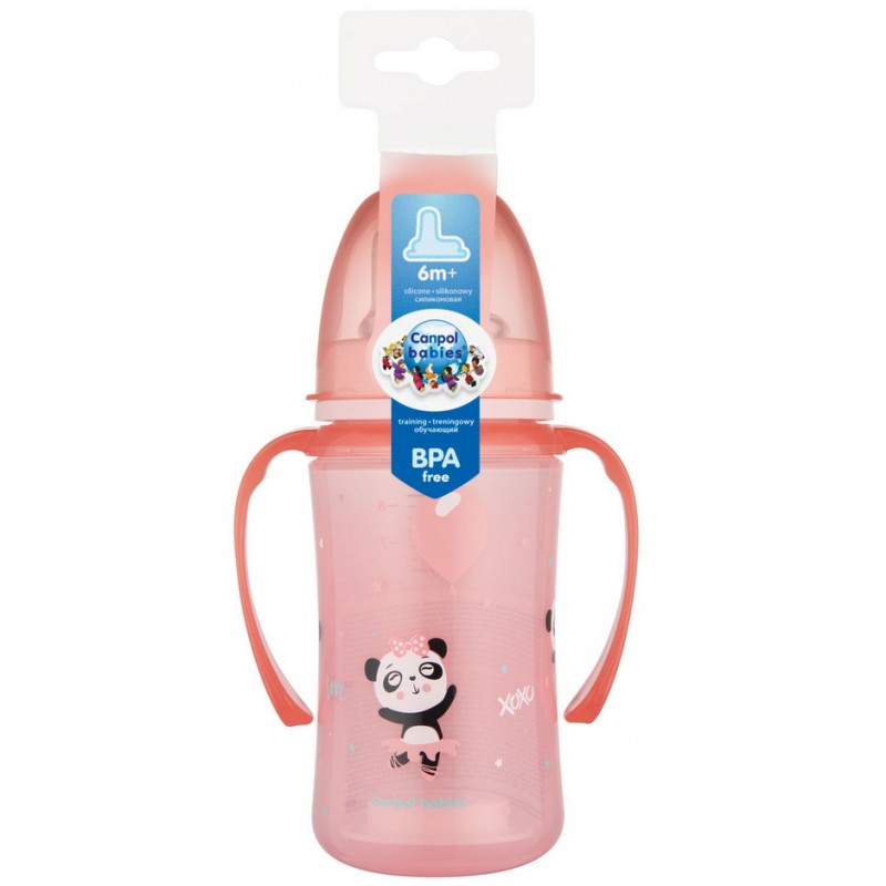 CANPOL Kubek treningowy 6m+ EasyStart pink 240ml EXOTIC ANIMALS