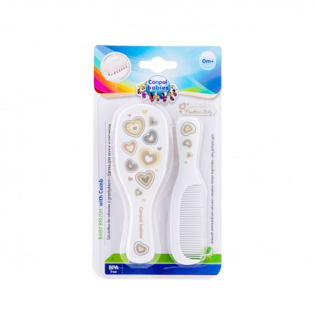 CANPOL Szczotka z naturalnego włosia z grzebykiem NEWBORN white 7/406