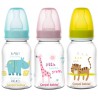 Butelka wąska wykonana z bezpiecznego polipropylenu. Jest lekka, przejrzysta, o wyprofilowanym kształcie i z przejrzystą skalą. Butelkę można myć w zmywarce i wyparzać. Umożliwia łączenie karmienia piersią i butelką. Posiada okrągły smoczek silikonowy o przepływie 0m+. Ma pojemność 120 ml.