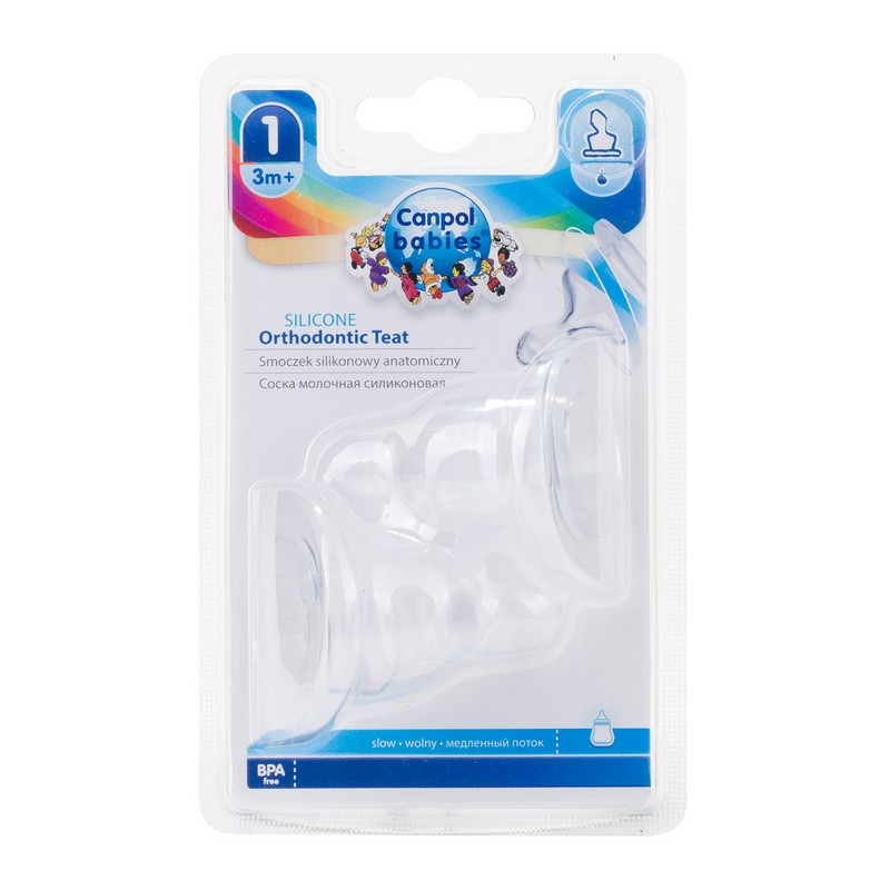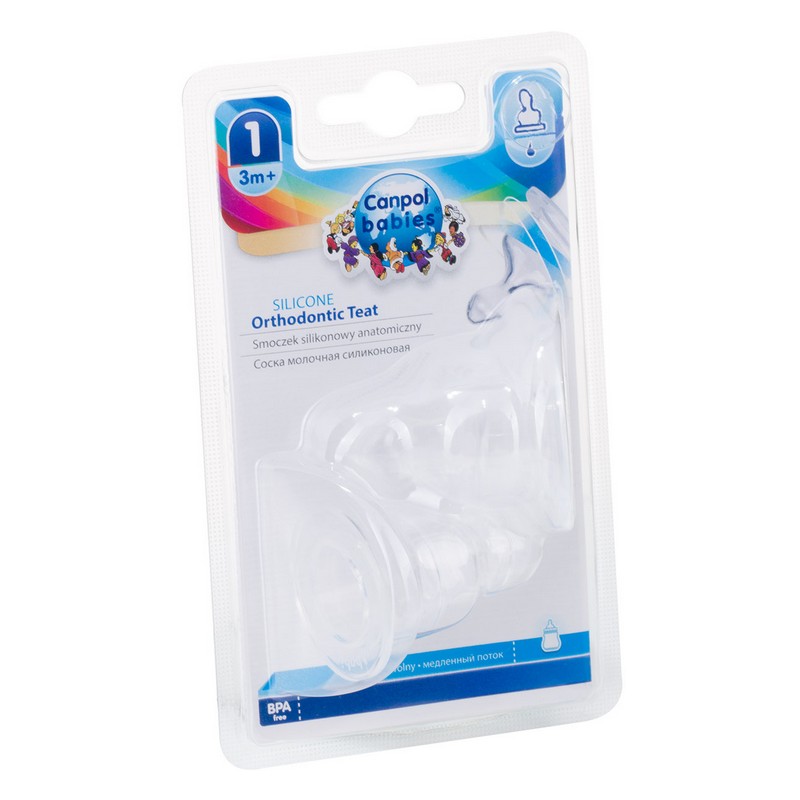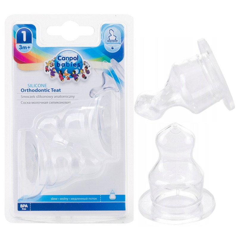Silikonowy smoczek ortodontyczny o przepływie wolnym pasuje do butelek wąskich. Doskonale odpowietrza się i nie zlepia podczas karmienia. Wykonany został z wysokiej jakości silikonu. Nie ma smaku ani zapachu. Przystosowany jest do wielokrotnej dezynfekcji.