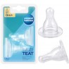 Silikonowy okrągły smoczek o przepływie mini pasuje do butelek wąskich. Doskonale odpowietrza się i nie zlepia podczas karmienia. Wykonany został z wysokiej jakości silikonu. Nie ma smaku ani zapachu. Przystosowany jest do wielokrotnej dezynfekcji. Przeznaczony dla dzieci w wieku 0-3 miesięcy. W opakowaniu 2 sztuki.