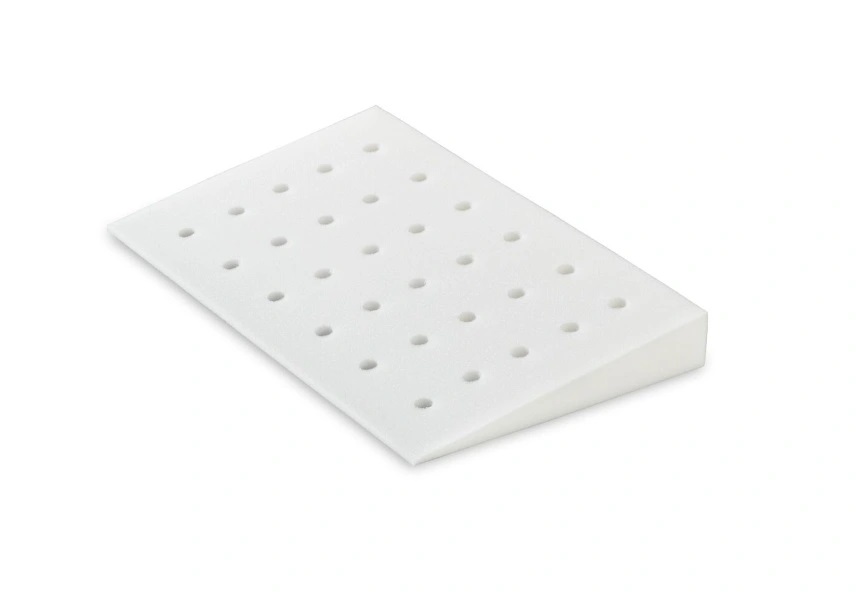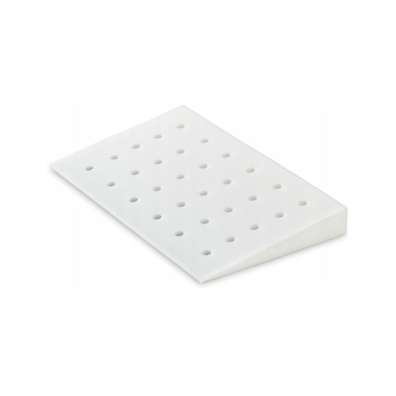 Poduszka Klin+ PMK1 ułatwiający oddychanie wykonana jest z twardej pianki poliuretanowej. otwory wewnątrz poduszki gromadzą powietrze, dzięki czemu ograniczają możliwość nagrzewania się poduszki podczas snu i wypoczynku oraz pocenia się główki śpiącego dziecka. Jest to szczególnie pomocne w upalne dni lub w sytuacji gdy dziecko gorączkuje.