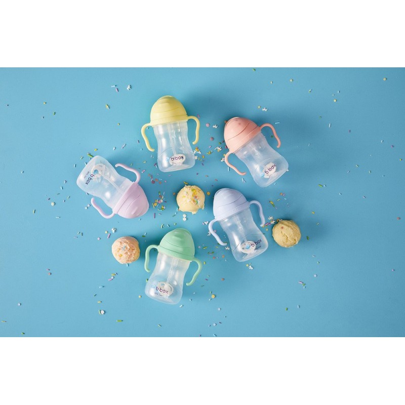 Tutti Frutti. Oto wyjątkowa, niesłychanie apetyczna, słodka i pastelowa jak wata cukrowa lub najsmaczniejsze włoskie lody, odsłona innowacyjnego bidonu b.box. Całym sobą zachęca by po niego sięgnąć i pić. Uroczy design oczywiście idzie w parze z wyjątkowym rozwiązaniem, które umożliwia dziecku wypicie ulubionego napoju aż do ostatniej kropli i to trzymając kubek w dowolnej pozycji.