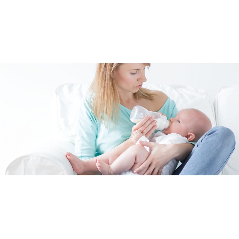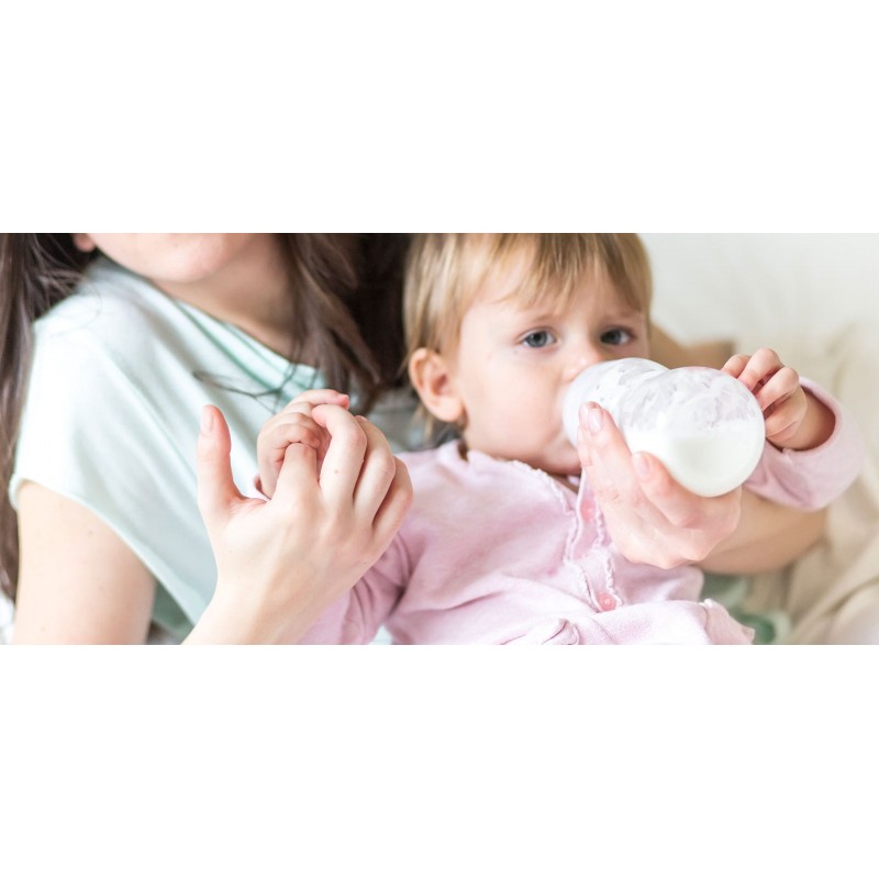Wystarczy wymienić smoczek na dołączony dysk uszczelniający i butelka zmienia się w pojemnik do przechowywania pokarmu.