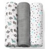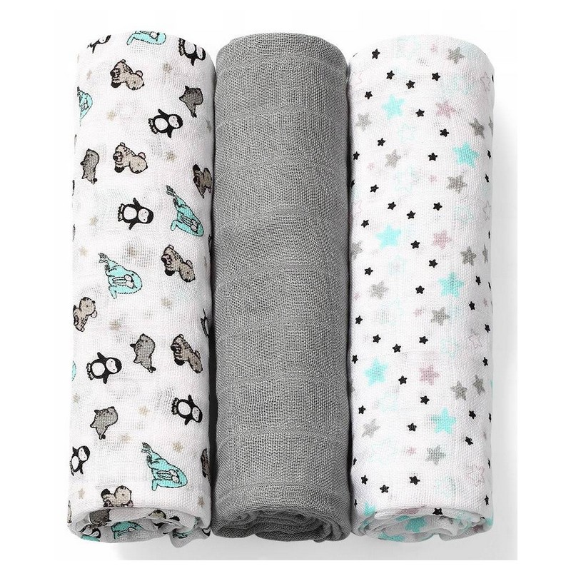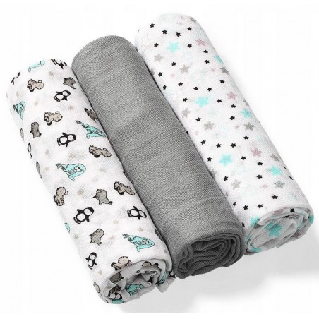 Pieluszki z włókien bambusa mogą być wykorzystywane już od pierwszych dni życia – jako otulacz, lekki kocyk, podkład do przewijania, prześcieradło czy podręczny ręcznik. Świetnie sprawdzą się jako okrycie podczas karmienia piersią czy podkład na ramię rodzica chroniący ubranie przed ulewaniem. Mogą też posłużyć jako przytulanka do snu albo lekka osłona do wózka. Sprawdzą się w każdej sytuacji wymagającej bliskości ze skórą maleństwa. Zestaw zawiera 3 sztuki pieluszek: 2 z nich są zdobione kolorowymi nadrukami, trzecia jest barwiona jednolicie. Pakowane są w transparentną torbę zapinaną na napy.