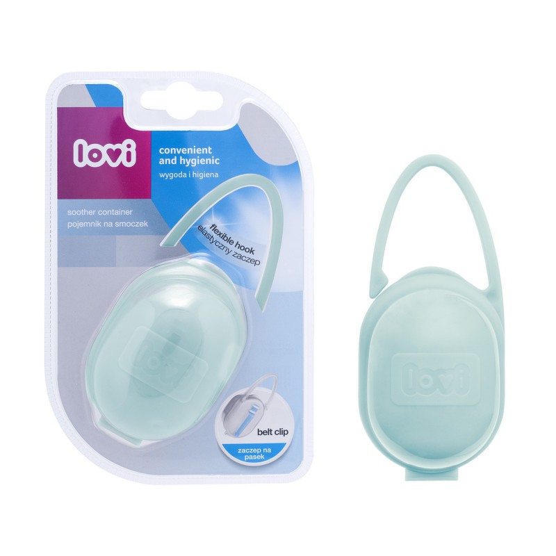 Pojemnik na smoczek LOVI umożliwia wygodne i higieniczne przechowywanie smoczka na spacerze i w podróży. Chroni smoczek przed zabrudzeniem i zgubieniem.