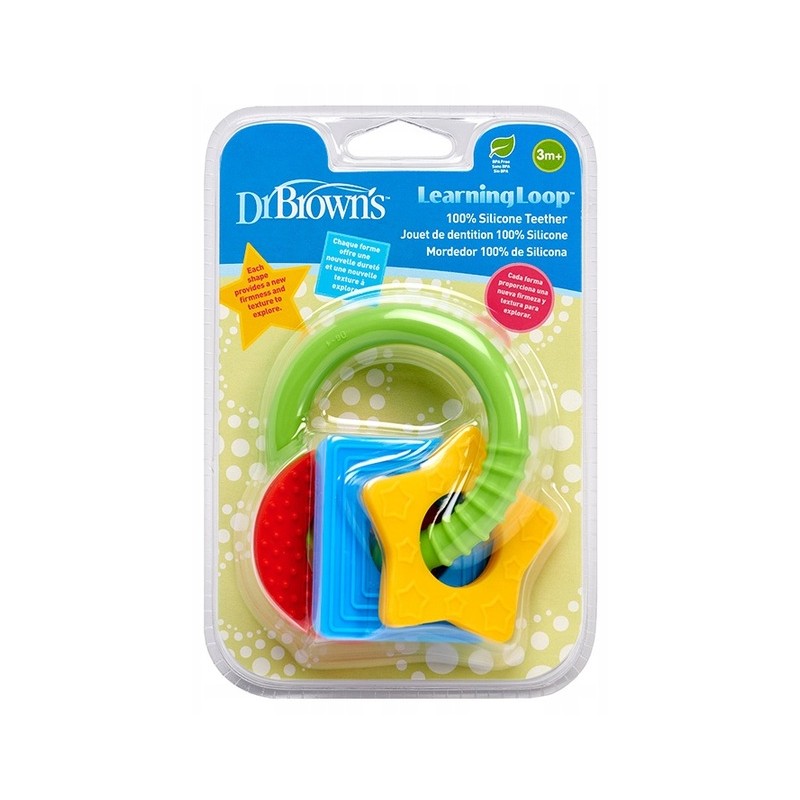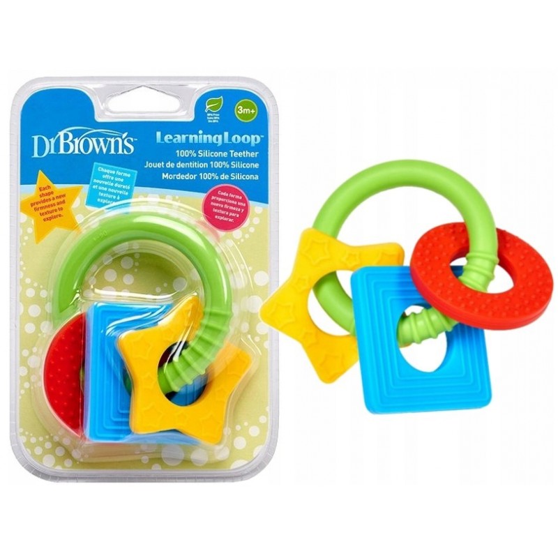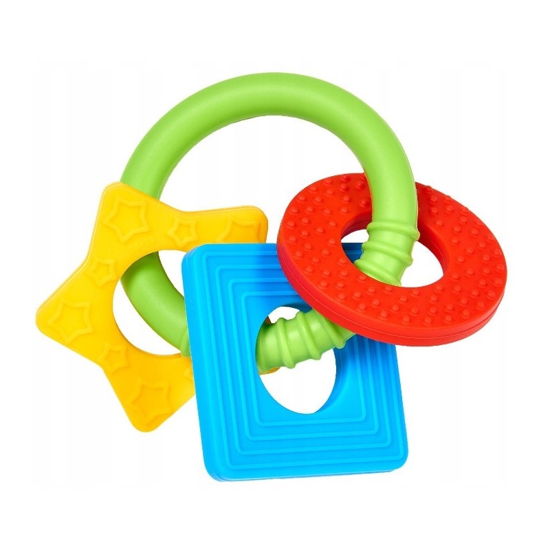 Gryzak za pomocą tekstury i koloru, uczy dziecko poznawania kształtów. Lekka konstrukcja sprawia, że świetnie nadaje się podczas ząbkowania. Łatwy do chwytania przez małe rączki. 100% silikonu. Można myć w zmywarce na górnej półce oraz sterylizować za pomocą sterylizatora. Dla dzieci powyżej 3 miesiąca życia.