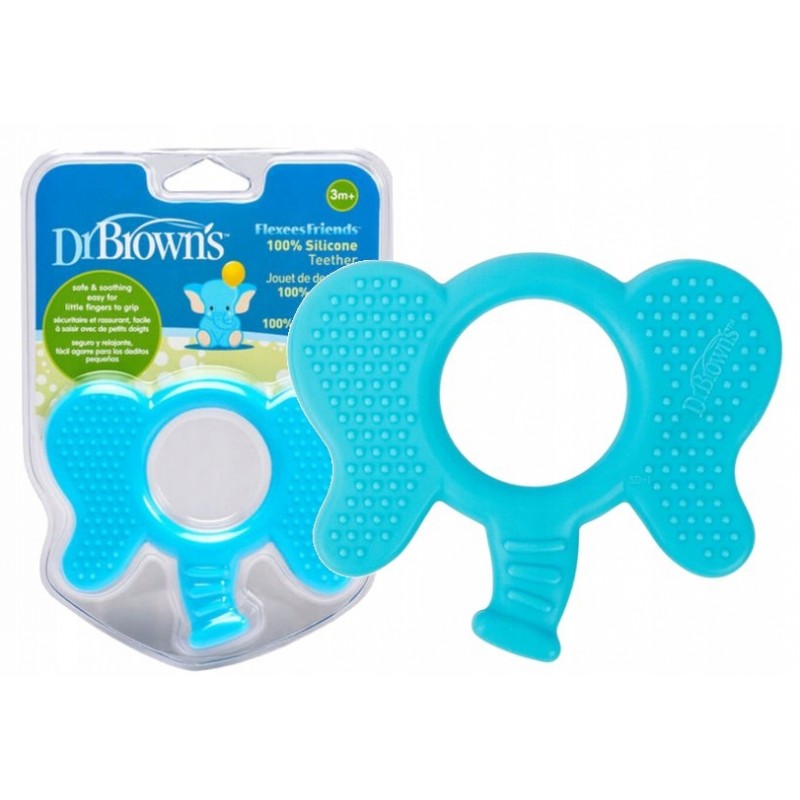 Gryzak Dr Brown's FLEXEES słoń skutecznie łagodzi ból podczas ząbkowania. Elastyczny i delikatny kojąco wpływa na obolałe dziąsła dziecka.