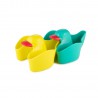 Kolorowe KACZKI, idealnie sprawdzą się podczas kąpieli. Kaczki można łączyć, układając je w dowolnej kolejności oraz wkładać jedną na drugą, dzięki czemu zachęcają dziecko do zabawy w wodzie. Zabawka pozwala na przelewanie wody oraz umożliwia spłukiwanie włosów dziecka. Kaczki uatrakcyjnią dziecku codzienną kąpiel. Różnorodne kształty oraz intensywne kolory bawią i uczą, stymulując rozwój psycho-motoryczny malca.Dopasowane do małych rączek dziecka. Łatwe do czyszczenia i przechowywania. Przeznaczone są dla dzieci w wieku 9m+.