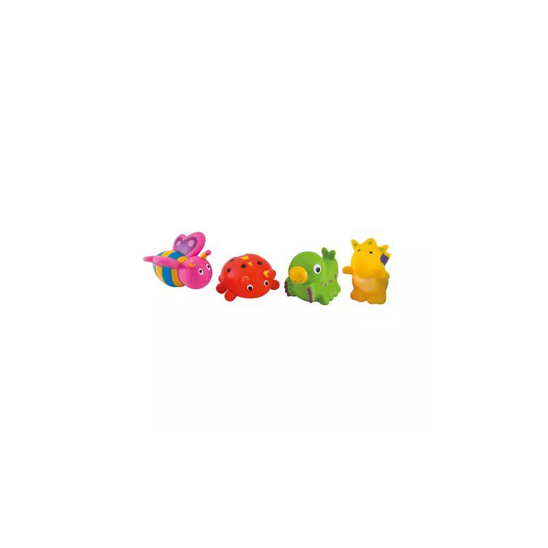 Zestaw zabawek kąpielowych OGRÓD uatrakcyjnią dziecku codzienną kąpiel. Wykonane zostały z wysokiej jakości miękkiej gumy. Kolorowe zwierzątka uczą i bawią. Po nabraniu w nie wody i ściśnięciu wypuszczają fontannę. W komplecie jest torebka, która umożliwia przechowywanie wszystkich zabawek w jednym miejscu. Zestaw składa się z 4 zabawek. Przeznaczony jest dla dzieci w wieku 12m+.