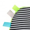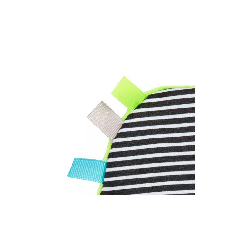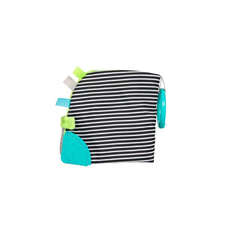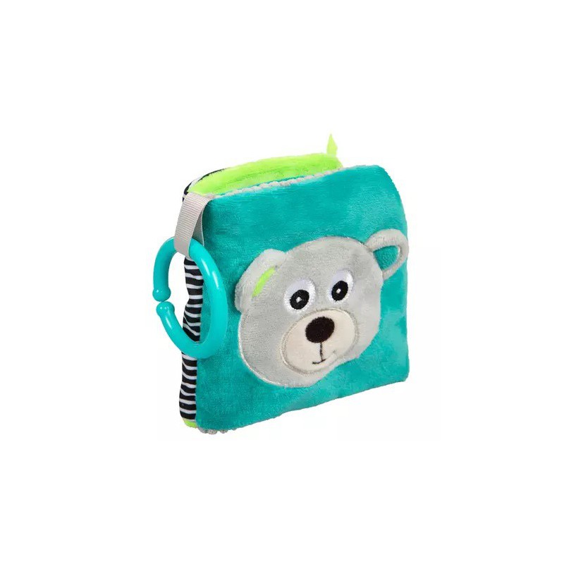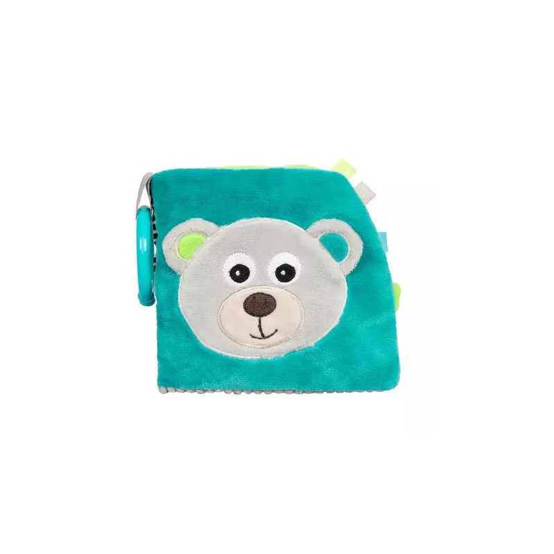 Książeczka edukacyjna BEARS kryje wiele niespodzianek, które zajmą dziecko na długi czas. Została wykonana z miłego w dotyku materiału o różnorodnej teksturze. Posiada gryzak, piszczek, grzechotkę i elementy szeleszczące. Dodatkową atrakcją jest bezpieczne lusterko, które wzbudzi ciekawość dziecka. Książeczka doskonale stymuluje rozwój koordynacji wzrokowo-słuchowej i motorycznej dziecka. Praktyczny zaczep umożliwia przypięcie zabawki przy wózku lub łóżeczku. Przeznaczona jest dla dzieci 0m+.