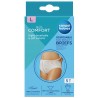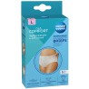 Jednorazowe majtki przeznaczone dla kobiet w okresie połogu. Wykonane są z miękkich, delikatnych dla skóry włókien umożliwiających swobodny przepływ powietrza. W pasie i pachwinach wykończone są delikatną nieuciskającą gumką. Pomagają utrzymać podkład poporodowy we właściwym miejscu. Rozmiar L. W opakowaniu 5 sztuk.