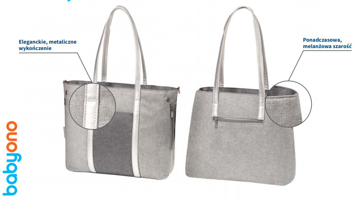 Babyono torba dla mamy SO DYNAMIC, to modna miejska torba na rzeczy mamy i maleństwa. Przemyślana funkcjonalność sprawia, że torba jest idealna na dłuższe i krótsze spacery. Posiada długi pasek na ramię oraz uchwyty do ręki, a także matę do przewijania. Torba zawiera 9 kieszeni w tym m. in. kieszenie szybkiego dostępu na telefon lub dokumenty, czy siatkowe kieszenie na butelki. Główna komora zapinana jest na zamek, a dwa boczne zatrzaski zmniejszają jej objętość w przypadku gdy torba jest średnio załadowana. SO DYNAMIC wyposażona jest w boczne paski, które umożliwiają mocowanie do dowolnego modelu wózka. Finezyjne, metaliczne wykończenia nadają tej torbie miejskiego szyku.