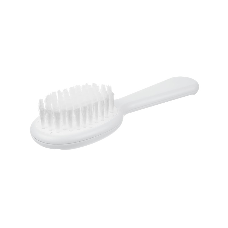 Szczotka i grzebień dla niemowląt to idealny zestaw do czesania pierwszych włosków i masażu główki dziecka. Zaokrąglone ząbki grzebienia nie podrażniają wrażliwej skóry, a syntetyczne włosie szczotki gwarantuje bezpieczną i przyjemną pielęgnację delikatnych włosków maluszka. Ergonomiczny kształt grzebienia i szczotki ułatwia wygodne użytkowanie, a specjalny schowek na grzebień pomoże w utrzymaniu porządku w akcesoriach maluszka.
