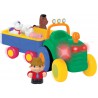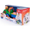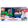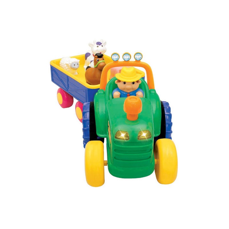 Traktor z przyczepą zawiera 5 zwierzątek, które nagrodzą dziecko realistycznym odgłosem lub wesołą rymowanką za każdym razem, gdy odgadnie ono prawidłowy kształt i włoży zwierzątko w odpowiednie miejsce. Po naciśnięciu komina traktor przez chwilę samodzielnie jedzie do przodu wydając realistyczny odgłos silnika. Po naciśnięciu fotela kierowcy rozlega się dźwięk wesołej melodyjki „farmer”. Gdy dziecko naciśnie kierownicę można usłyszeć dźwięk klaksonu a przednie światła zaczną mrugać.