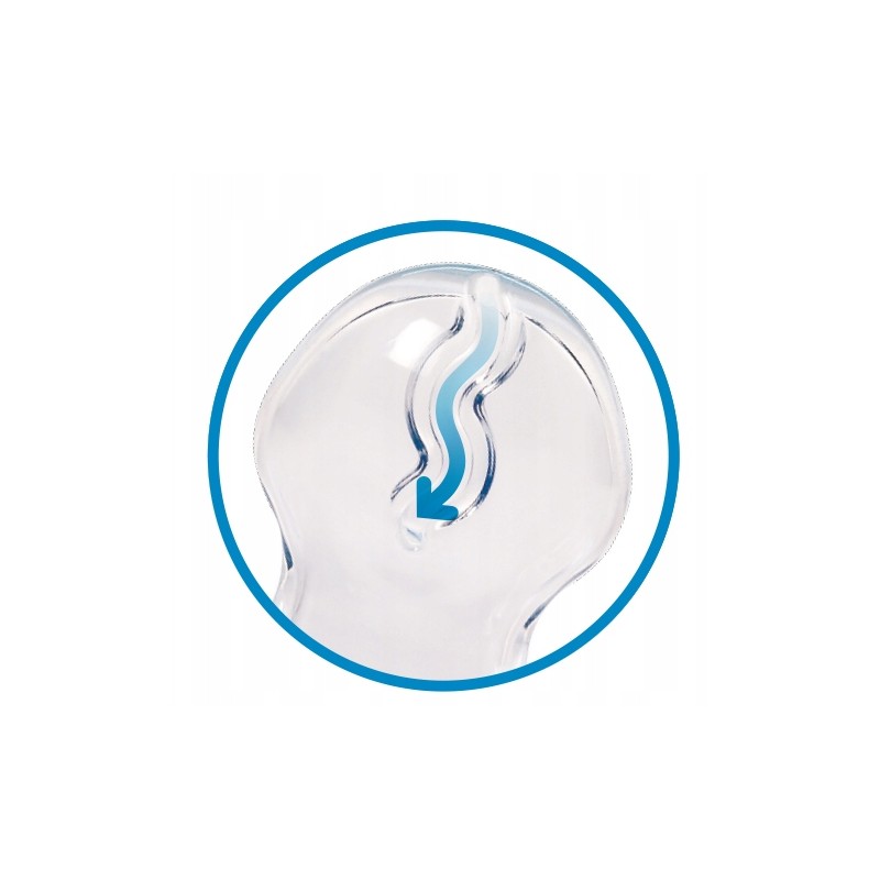 - Smoczek z opatentowaną metodą ssania - kanalik odpowietrzający pomaga redukować ssanie i ciśnienie przy podniebieniu