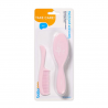 Super miękka szczotka do włosów z delikatnym i bardzo cienkim (0,1 mm) włosiem przeznaczona jest do pielęgnacji niemowląt. Doskonale masuje skórę dziecka i dzięki swoim właściwościom antystatycznym nie elektryzuje włosów. Dołączony do zestawu grzebień ma zaokrąglone ząbki, dzięki czemu skóra dziecka nie zostaje podrażniona.