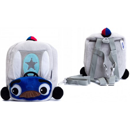 Zabawny plecaczek Auto niebieski może służyć do zabrania przekąsek, zabawek i wszelkich niezbędnych artykułów podczas podroży.