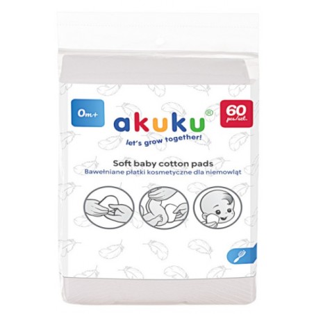 AKUKU Płatki Kosmetyczne Bawełniane dla Noworodka 60szt