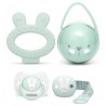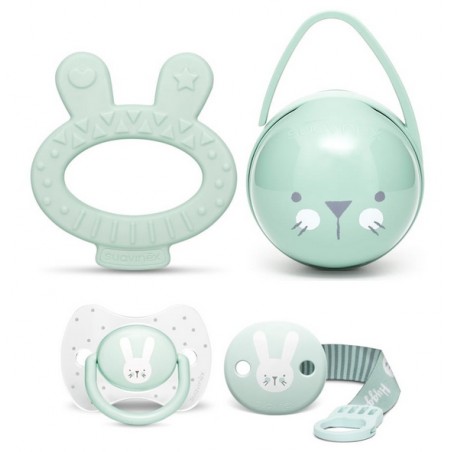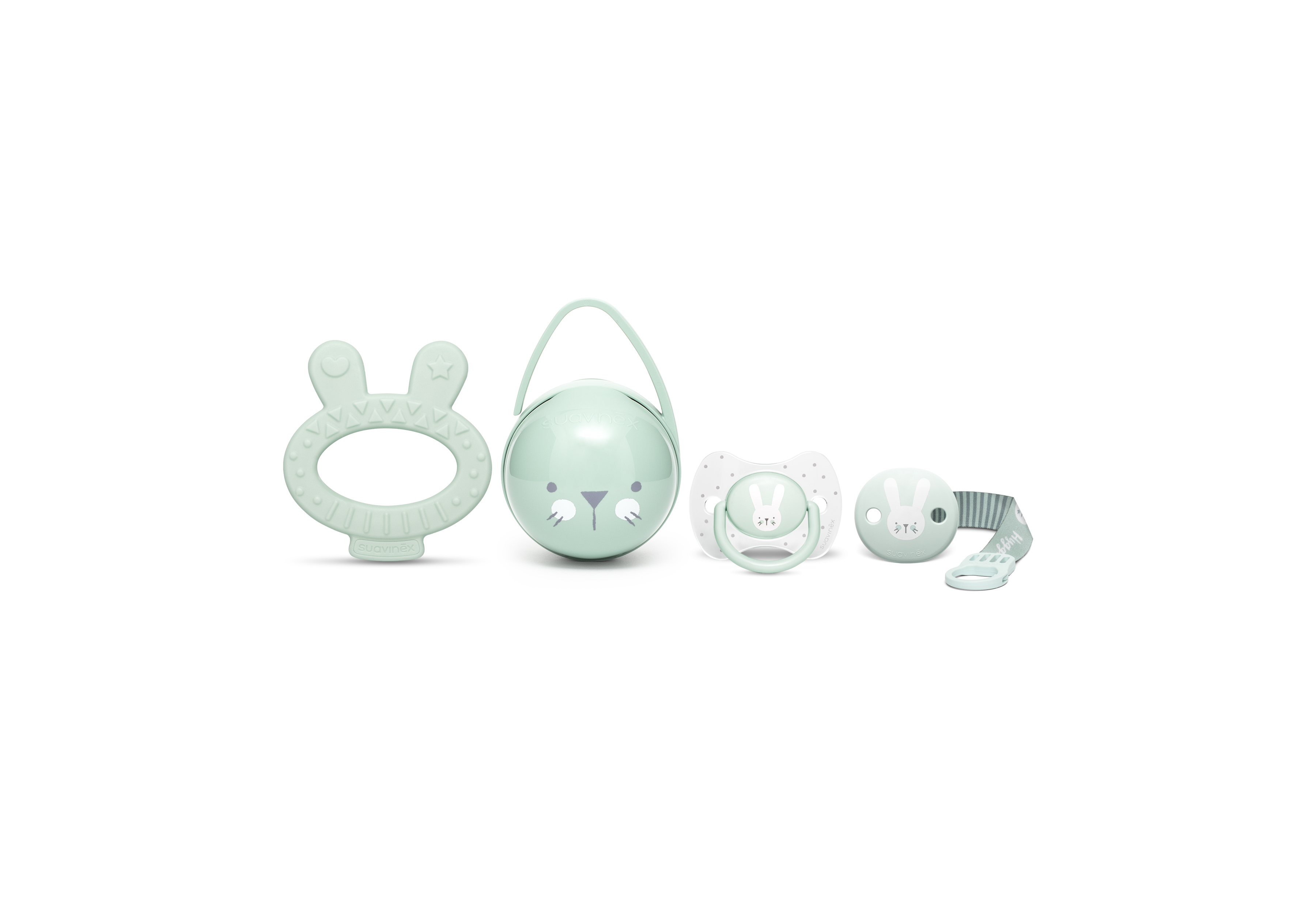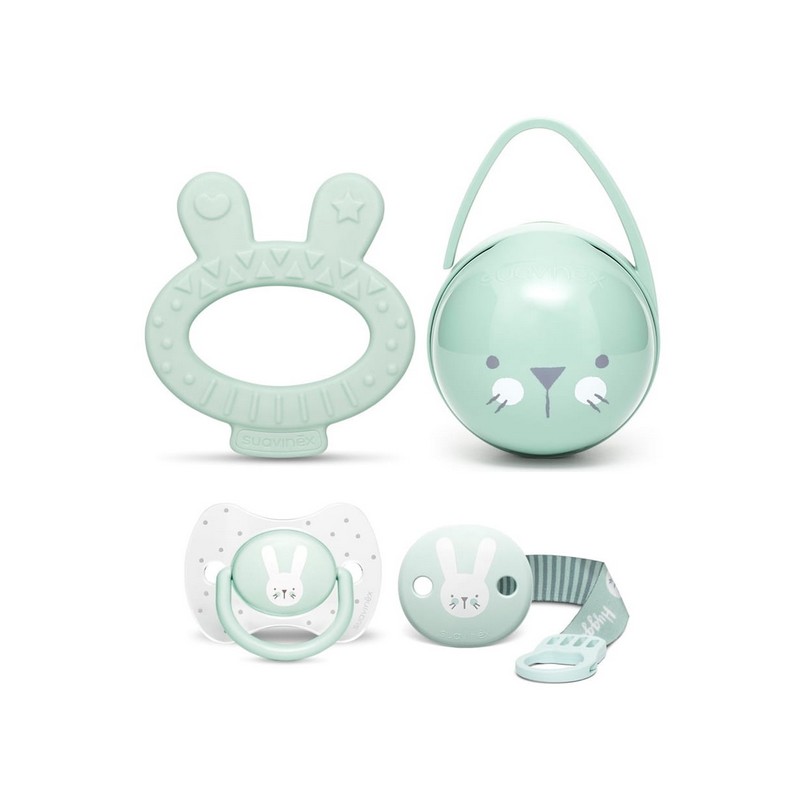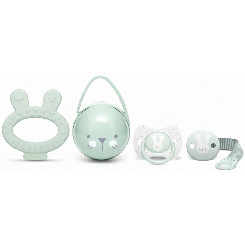 Zestaw podarunkowy Hygge od Suavinex składa się z gryzaczka, smoczka, klipsa do smoczka oraz podwójnego opakowania na smoczki. Zestaw idealnie się sprawdzi jako zakup pierwszych produktów bądź na prezent dla przyszłych rodziców.