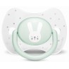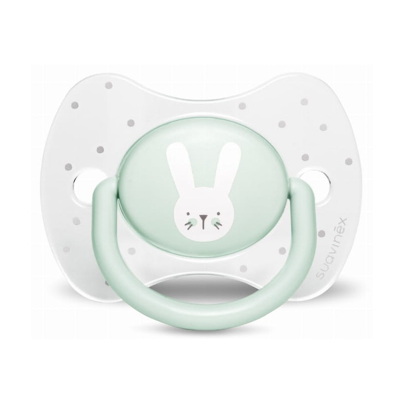 Fizjologiczny smoczek, węższy i płaski u podstawy, pozwala dobrze ułożyć smoczek w ustach dziecka, wywierając minimalny nacisk na podniebienie.