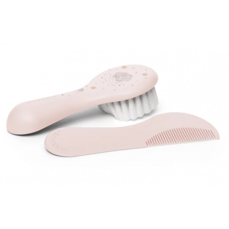 Szczoteczka i grzebień firmy Suavinex z kolekcji Hygge wykonane z wysokiej jakości tworzyw sztucznych, bezpiecznych dla dzieci, jest idealnym pomocnikiem do codziennej pielęgnacji delikatnej skóry głowy i pierwszych włosów dziecka.