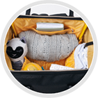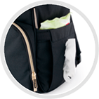 Praktyczna boczna kieszeń na mokre chusteczki, bez konieczności otwierania kieszeni.