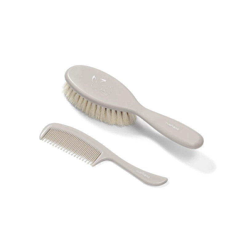 Super miękka szczotka do włosów z delikatnym naturalnym włosiem przeznaczona jest do pielęgnacji noworodków. Doskonale masuje skórę dziecka i dzięki swoim właściwościom antystatycznym nie elektryzuje włosów. Dołączony do zestawu grzebień ma zaokrąglone ząbki, dzięki czemu skóra dziecka nie zostaje podrażniona.