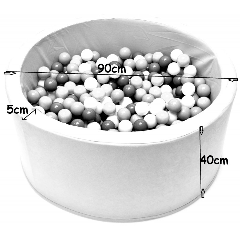 Suchy basen skonstruowany jest ze stabilnej, jednocześnie miękkiej podstawy. Gruba pianka posiada certyfikaty bezpieczeństwa dla dzieci. W zestawie znajduje się 200 piłeczek kolorystycznie przypisanych do danego modelu basenu. Można dokupić dodatkowe kuleczki w różnych wersjach kolorystycznych, aby dopasować je do wystroju wnętrza. Piłeczki do basenu są elastyczne, odporne na zgniecenia, w dopasowanych rozmiarach, aby dziecko nie mogło ich pogryźć i połknąć. Produkt zapewni dziecku niezapomniane chwile, które będą spędzone na wspaniałej zabawie. Basen można używać w domu, jak i na zewnątrz. Pokrowiec basenu jest zapisany na zamek, co umożliwia pranie w pralce, dzięki czemu utrzymanie zabawek w czystości nie jest problemem. Zabawa w basenie to okazja do treningu mięśni Maluszka. Otaczające dziecko piłeczki masują receptory na ciele naszej Pociechy. Basen wykonany z pianki poliuretanowej, obszyty wewnątrz wyjątkowo miękką i trwałą tkaniną welurową. Podłoga o grubości 3 cm, ma zdejmowany pokrowiec i może służyć jako oddzielna mata.