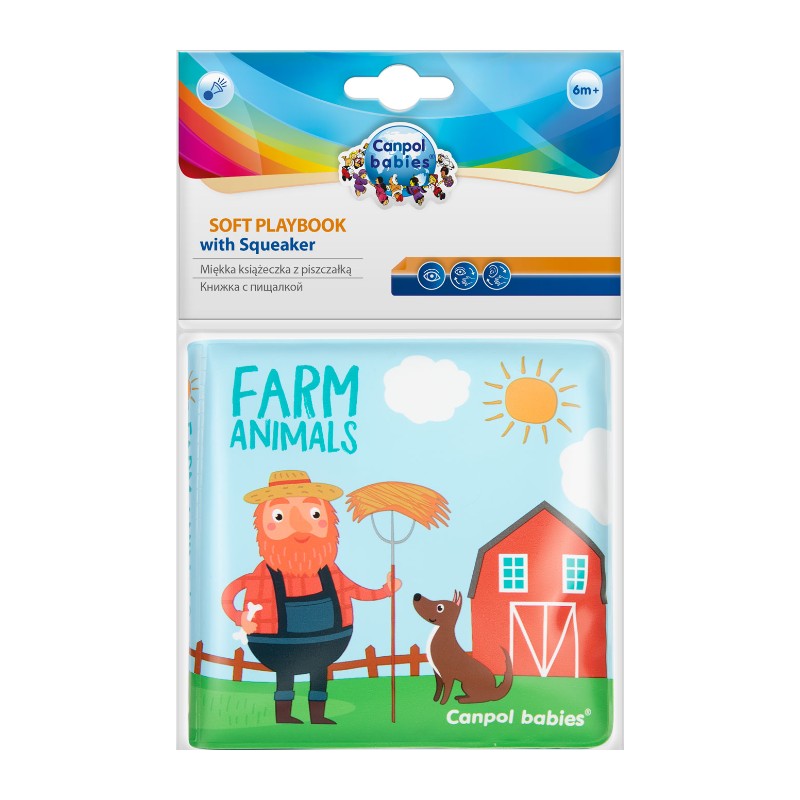 Miękka książeczka edukacyjna wykonana z wysokiej jakości bezpiecznych materiałów. Posiada wiele atrakcji w środku, które z pewnością zainteresują każde dziecko. Kolorowe rysunki oraz dźwięk piszczałki, wydobywający się po naciśnięciu książeczki zajmą malca na długi czas. Zabawkę bardzo łatwo utrzymać w czystości. Książeczkę można używać również podczas kąpieli.