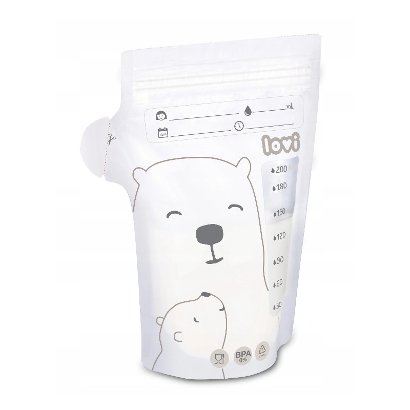Torebki LOVI to bezpieczny sposób na ochronę cennego mleka matki. Można je przechowywać w lodówce lub zamrażarce. Sterylne torebki są gotowe do natychmiastowego użycia,a profilowany dzióbek ułatwi nalewanie mleka z torebki do butelki.