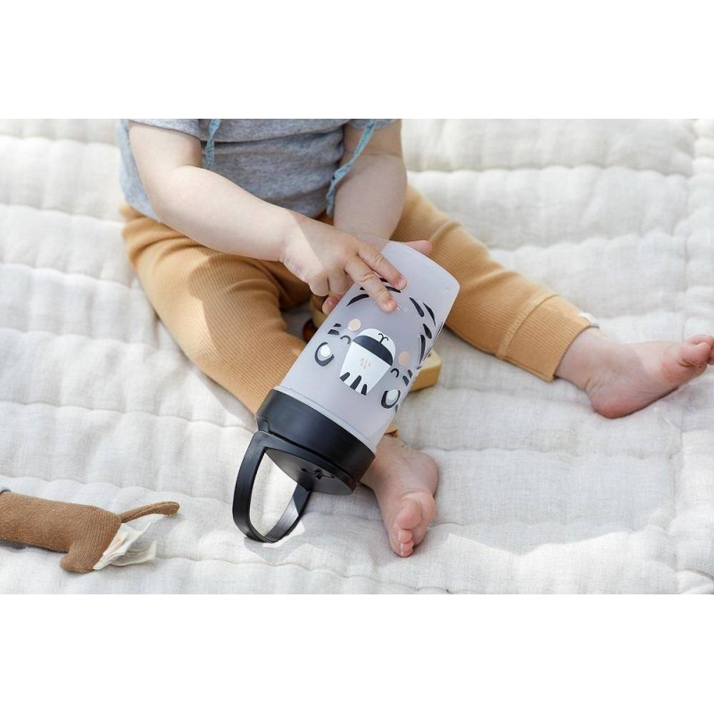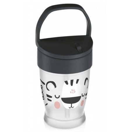 Kubek posiada nakrętkę z wygodnym uchwytem, co umożliwia łatwe noszenie przez dziecko.