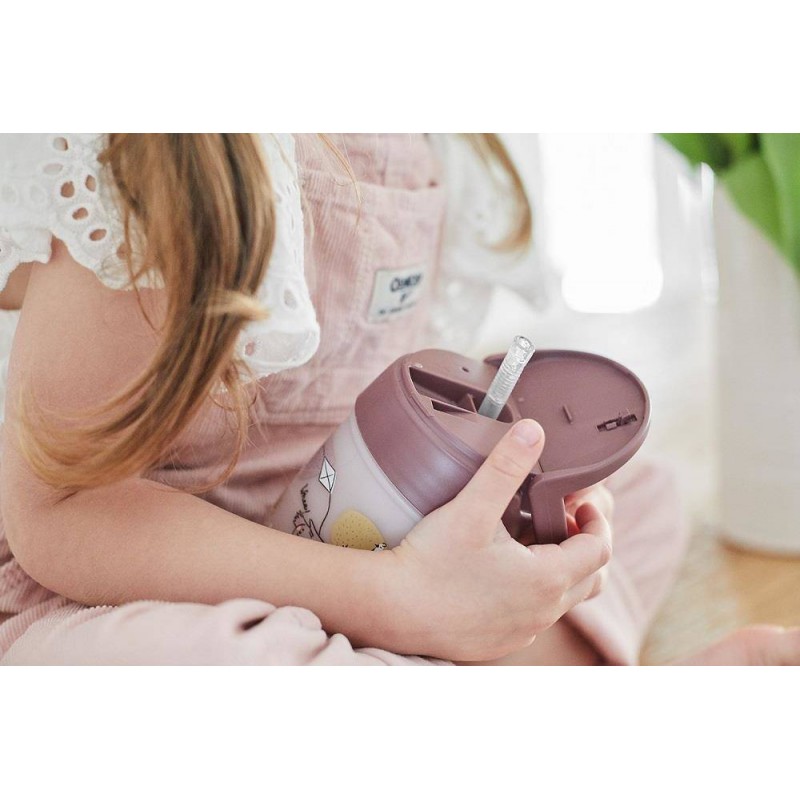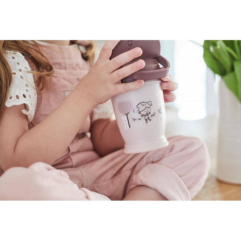 Kubek posiada nakrętkę z wygodnym uchwytem, co umożliwia łatwe noszenie przez dziecko.