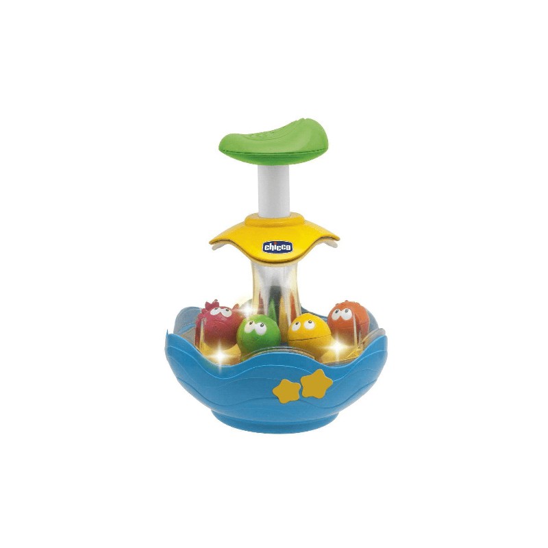 Tradycyjny bączek, lubiona przez wszystkie dzieci, doskonale pamiętana przez ich rodziców zabawka, teraz pojawia się w nowoczesnej wersji, z podświetleniem i nowymi bohaterami. Naciśnij zielony, ergonomiczny przycisk na szczycie zabawki, aby cała gromada morskich stworków, znajdujących się wewnątrz przeźroczystej kuli zawirowała wśród kolorowych fal.