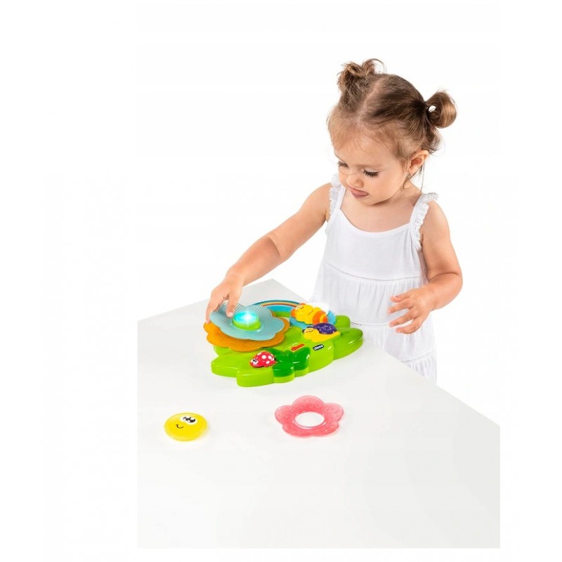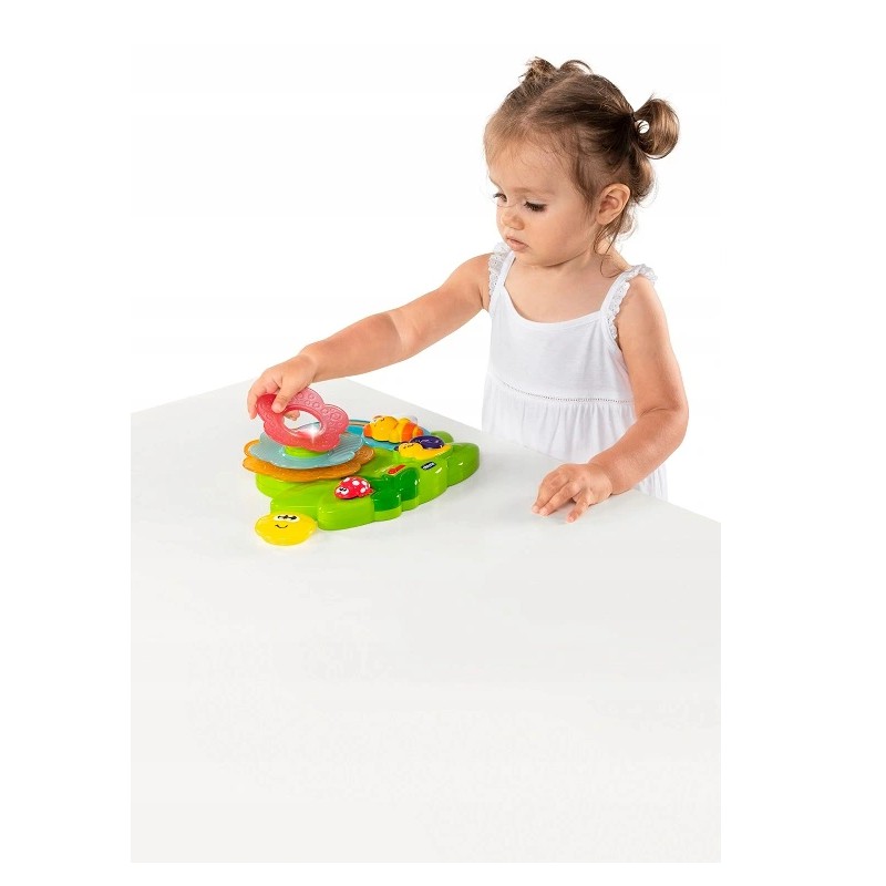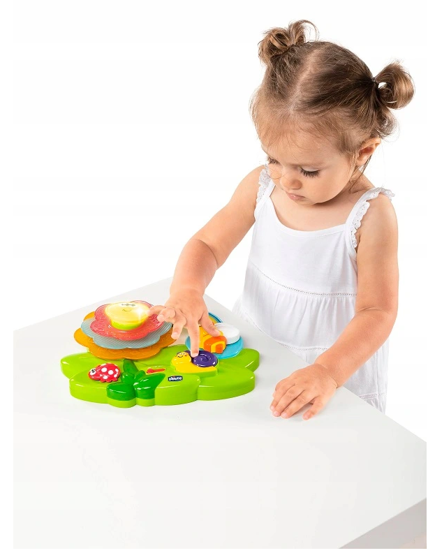 SENSORYCZNY KWIAT CHICCO jest doskonałą zabawką edukacyjną wspomagającą koncentrację i doskonalącą zdolności manualne dziecka.
