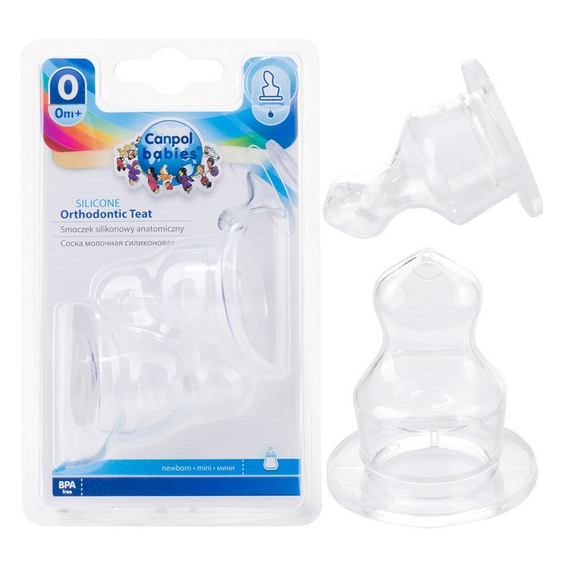 Canpol Smoczek Silikonowy anatomiczny do butelki wąskiej MINI 0m+ 2 szt
