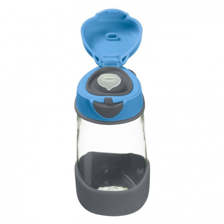 Sportowa butelka B.Box z ustnikiem, wykonana została z bezpiecznego, trwałego i bardzo lekkiego Tritanu. Posiada ergonomiczny kształt umożliwiający wygodny chwyt oraz ustnik, który nie wymaga uciskania dzięki czemu ułatwia picie. Pokrywka posiada blokadę uniemożliwiającą jej opadanie na twarz dziecka oraz poręczny przycisk ułatwiający otwieranie i zamykanie butelki.