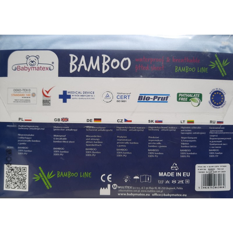 Najwyższa jakość dzianiny bambusowej to wyznacznik serii prześcieradełek Bamboo. Wszyta gumka gwarantuje dopasowanie do materacyka. Prześcieradełko jest przyjemne w dotyku i przyjazne dla skóry dziecka. Dodatkowo prześcieradełko posiada Certyfikat najwyższej klasy bezpieczeństwa Oeko Tex.