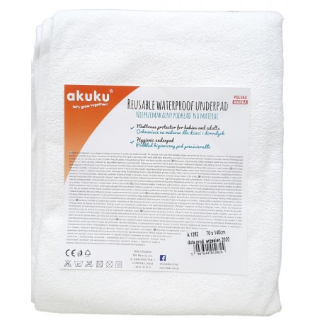 Nieprzemakalny podkład na materac z froty podgumowanej AKUKU w rozmiarze 70x140 cm to doskonała ochrona materaca przed zmoczeniem. W pełni wodoodporny i zarazem oddychający doskonale sprawdzi się w domu dla małych dzieci jak i osób starszych.