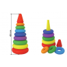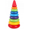 Piramidka składa się z 7 plastikowych kółek o różnych wielkościach i kolorach oraz drążka do nakładania kółek, na samej górze znajduje się stożek. Zabawa układanka sprzyja rozwojowi koordynacji ruchowo-wzrokowej oraz zdolności manualnych dziecka.