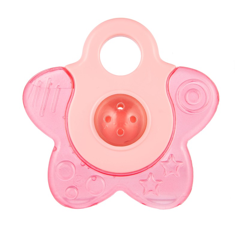 Gryzak wodny z grzechotką idealnie sprawdzi się w okresie ząbkowania przynosząc ulgę swędzącym dziąsłom maluszka. Wykonany jest z miękkiego tworzywa o niejednolitej powierzchni, dzięki czemu delikatnie masuje opuchnięte dziąsła. Dodatkową zaletą jest możliwość schłodzenia gryzaka w lodówce, co dodatkowo łagodzi odczucia bólowe związane z ząbkowaniem. Kształt gryzaka idealnie pasuje do malutkich rączek, a umieszczona wewnątrz grzechotka zachęca do zabawy. Zabawka dostępna jest w dwóch kontrastowych kolorach, przeznaczona dla dzieci w wieku 0m+.