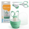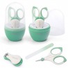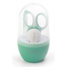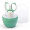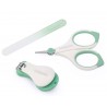 Kompletny zestaw do pielęgnacji paznokci niemowląt. Higieniczne, wykonane ze stali nierdzewnej nożyczki i cążki do obcinania paznokci oraz szklany pilniczek do wygładzania nierówności. Wszystkie elementy zestawu zapakowane są w praktyczne etui, które umożliwia higieniczne przechowywanie oraz przenoszenie.