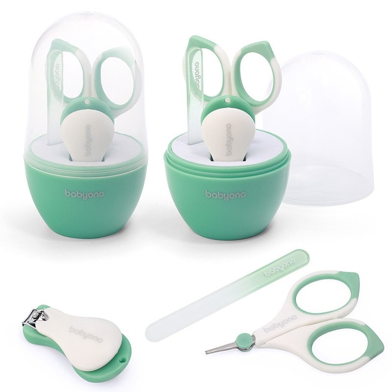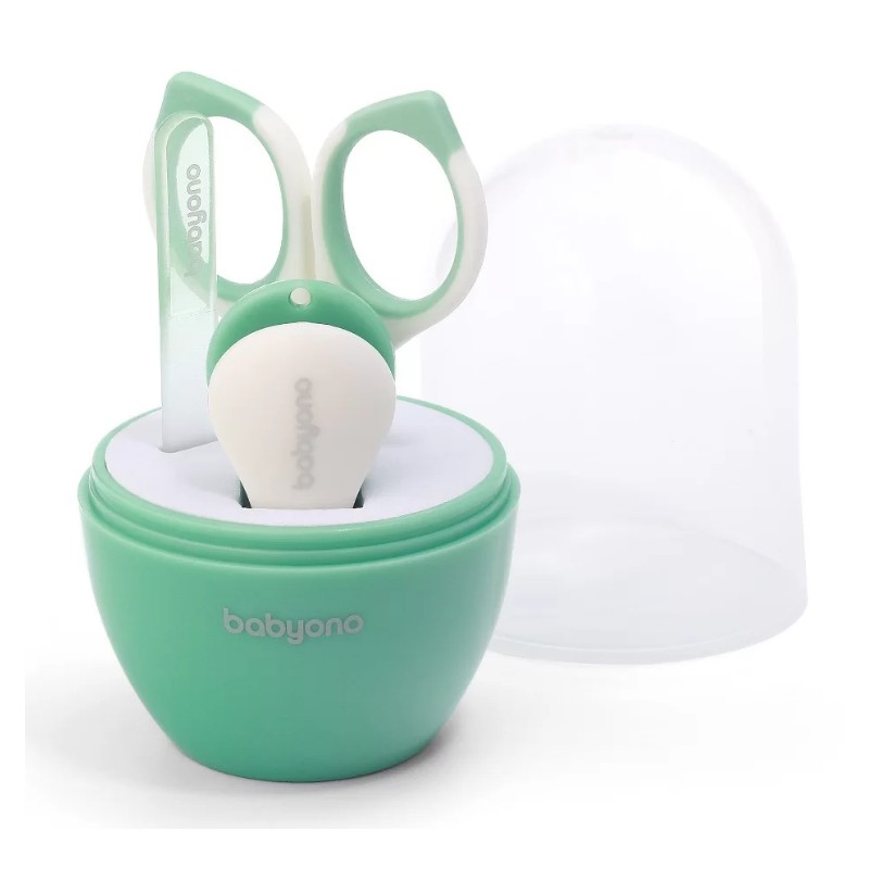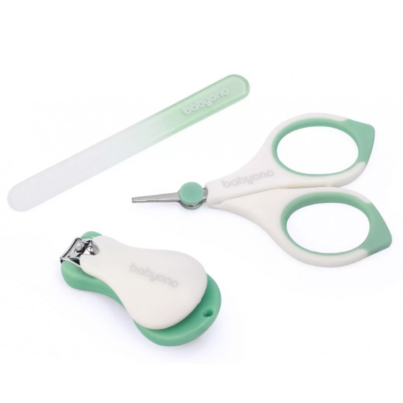 Zestaw do paznokci marki Babyono. Higieniczne wykonane ze stali nierdzewnej nożyczki i cążki bezpiecznie i dokładnie obetną delikatne paznokcie Twojego dziecka. Szklany pilniczek starannie wygładzi pozostałe nierówności.