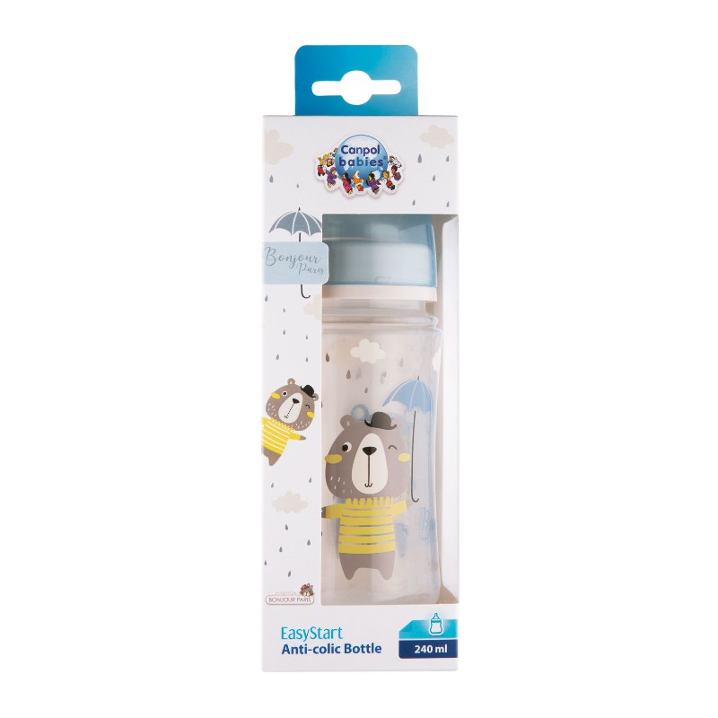 CANPOL Butelka Antykolkowa 240ml EasyStart BONJOUR 35/232blu