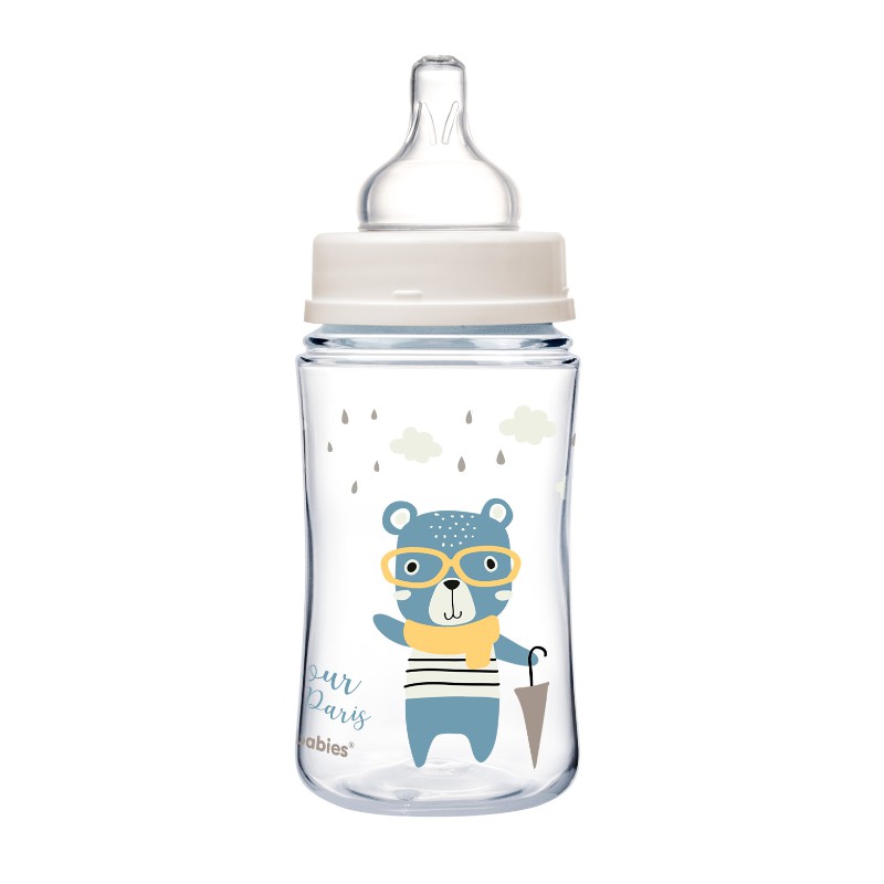 Butelka antykolkowa EasyStart Bonjour Paris stworzona została z myślą o najmłodszych dzieciach. Gwarantuje łatwy start w karmieniu i umożliwia łączenie karmienia piersią i butelką. Jej miękki smoczek - kształtem zbliżony do kształtu piersi mamy, ułatwia dziecku akceptację butelki, a skuteczny zaworek antykolkowy zapobiega powstawaniu pęcherzyków powietrza w pokarmie i tym samym redukuje ryzyko powstawania kolek, bólów brzuszka, nadmiernego odbijania i gromadzenia się gazów. Butelkę wyróżnia też oryginalny design.