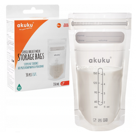 Woreczki do Pokarmu Sterylne 30szt 150ml AKUKU