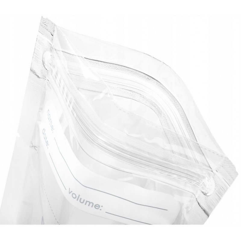 Jednorazowe, sterylne woreczki służą do przechowywania pokarmu w lodówce lub jego mrożenia. Spełniają najwyższe standardy higieny dzięki sterylizacji wiązką elektronów E. Stabilna podstawa woreczka umożliwia wygodne przechowywanie w pionie i zabezpiecza pokarm przed rozlaniem. Szczelne, podwójne strunowe zapięcie ułatwia otwieranie i zapewnia bezpieczeństwo przechowywanego pokarmu, chroniąc jednocześnie przed przenikaniem zapachów. Dzięki miarce umieszczonej na woreczku można precyzyjnie odmierzyć odpowiednią ilość pokarmu, a na białej etykietce umieszczonej na woreczku można zamieścić notatkę o dacie, godzinie i ilości odciągniętego pokarmu.